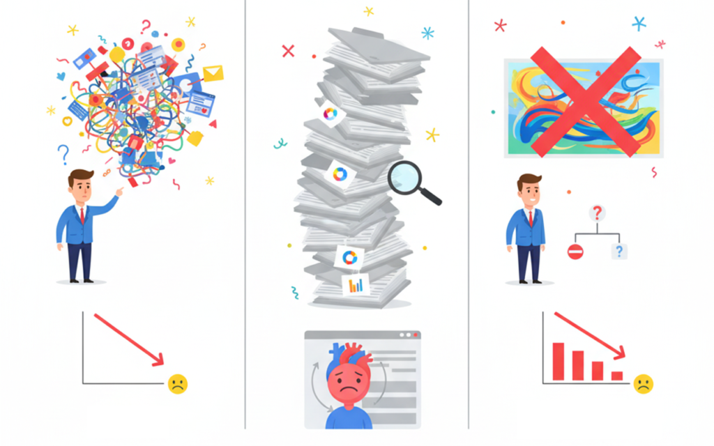 なぜ「デザインは良いのに成果が出ない」という状況が起きてしまうのでしょうか。それは、戦略と実行が分断されているからです。私たちデザイン会社が現場で直面する、典型的な失敗パターンをご紹介します。